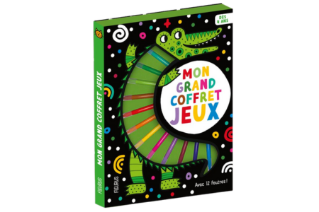 Pour stimuler l’imagination et la motricité des petits artistes, ce grand coffret propose 32 pages de jeux à colorier, accompagnées de 12 feutres vifs et variés ! Au programme : labyrinthes malicieux, jeux de paires, cherche et trouve, ainsi que des coloriages codés et des intrus à débusquer. Les enfants explorent une foule d’univers amusants, des animaux de la jungle aux poissons tropicaux, en passant par les dinosaures, pirates, licornes et autres personnages fantastiques.